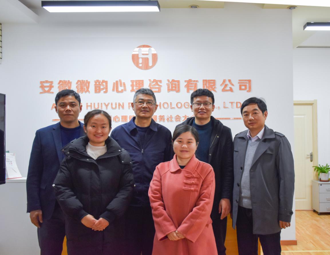 在安徽徽韵心理咨询有限公司,阮爱民一行参观了公司各个功能室,并与我校毕业的公司员工一起合影,我校优秀毕业生、公司总经理孙超全较详细的介绍了公司运行与创业发展情况,双方就实习就业基地的进一步深化合作进行了深入交流。