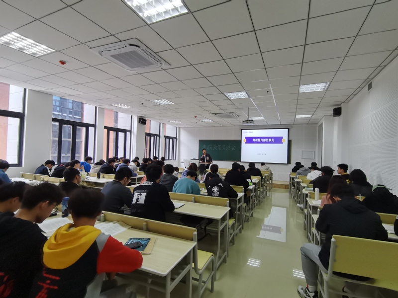 2021年4月15日上午,机械工程学院在南教学楼202A举办考研政策宣讲会,邀请跨考考研知名讲师宋储强担任主讲,学院就业联络员陈浩、辅导员方钱及2018级同学参会。