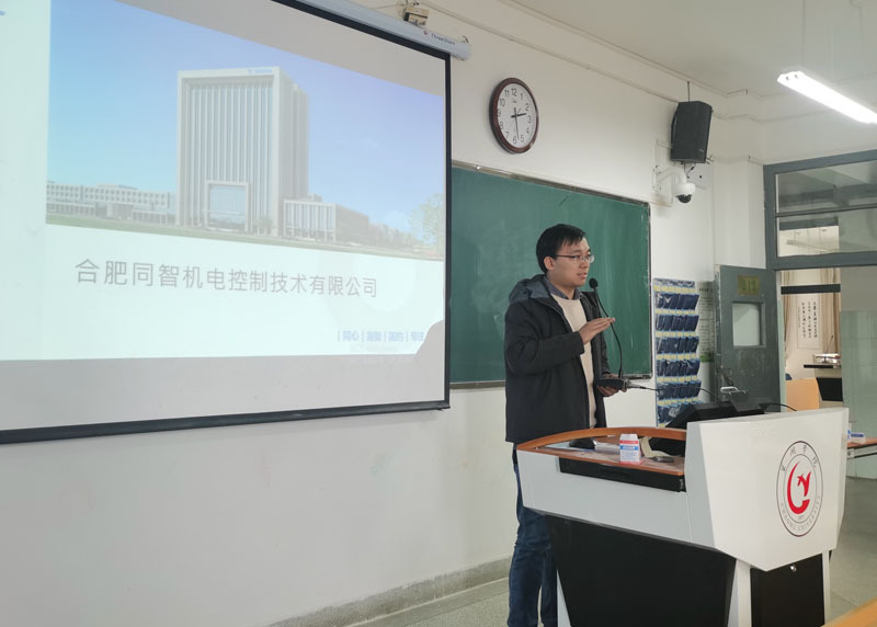 参加此次招聘单位的有合肥同智机电控制技术有限公司(军工上市企业)、芜湖国睿兆伏电子公司、安徽天轩网络科技有限公司。各招聘单位的人事经理先后介绍了公司概况、发展前景、岗位要求、薪资福利待遇等方面的情况。同学们也就自己关心的问题进行了提问,宣讲会后同学们向有意愿的招聘单位递交了求职简历及参加面试。