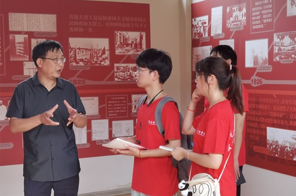 7月15日,全体团队成员到达安庆,开启“重走‘延乔路’”红色之旅。实践队成员在安庆市懒悟艺术馆馆长张庆的带领下,前往桃元艺术村参观《陈延年陈乔年革命事迹展》,事迹展共展出各类资料图片120幅,按照时间顺序,分为陈延年、陈乔年两条主线,通过《身世》《求学》《献身》《缅怀》四个篇章表现陈氏兄弟的革命事迹,通过年表展现二位烈士一生的经历。真实的资料图片、完整的生平展示、生动细致的讲解,实践队成员进一步认识到陈氏兄弟为了共产主义信仰舍生忘死的革命情怀,了解了他们少即扬名背后的艰辛奋斗历程和凛然大义。