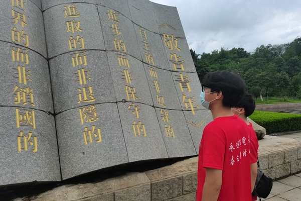 团队成员第二天前往独秀园进行参观学习。陈独秀作为陈延年、陈乔年的父亲,对他们的成长发展有很大影响。独秀园是以陈独秀墓为核心的大型人文景观,包含陈独秀墓、惊雷浮雕、陈独秀铜像、《新青年》碑刻等景点。《新青年》如一声惊雷,预示着春天的到来,它的创刊是新文化运动兴起的标志,队员们在《新青年》碑刻处驻足停留,感受先辈们为唤起民族觉醒做出的努力。