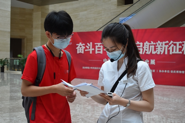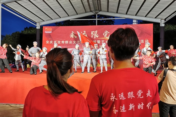 团队成员在安庆市博物馆参观学习《中国共产党安庆历史展》,展览以“奋斗百年路启航新征程”为主题,图文并茂地展示了安庆市红色历史和革命人物的资料,其中就包括“双百”人物中的优秀共产党员陈延年。临近傍晚,团员成员前往迎江区文化舞台观看“永远跟党走”文艺作品展演暨艺术党课,演员们通过音乐、表演等艺术形式,以润雨细无声的方式将红色精神传递给台下的群众。演出过后,团队成员对演出人员以及观看演出的市民进行调研访谈,对于这样喜闻乐见的党史学习教育载体,市民们表示肯定和赞许:“能以演出的形式,学习了解到党史,大家都很喜欢!”