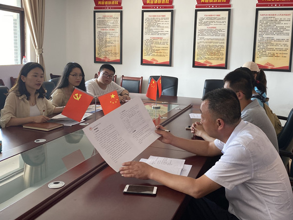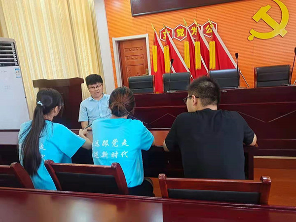7月15日,实践团队首先抵达黄麓镇跃进村,并向村内的扶贫干部发放调查问卷,以便科学准确地了解扶贫干部当前的心理健康状况。跃进村党总支书记周先驷与调研团队师生成员召开座谈交流会,周先驷介绍了跃进村扶贫干部的基本信息、工作日常、取得的脱贫攻坚工作成果及工作过程中的困难险阻,特别是疫情期间基层工作变得更加艰巨,他说道:“近年来,在脱贫攻坚的道路上,我们巢湖市坚持一切力量向脱贫攻坚聚合、一切工作向脱贫攻坚聚焦、一切资源向脱贫攻坚聚集,脱贫攻坚取得实质性成效,扶贫干部们也奉献了全部的热情和精力,但完成工作的同时也经历了许多挫折,心理上也存在一些困扰,因此怎么样去做好扶贫干部的心理健康建设工作也是我们一直关注的问题”。