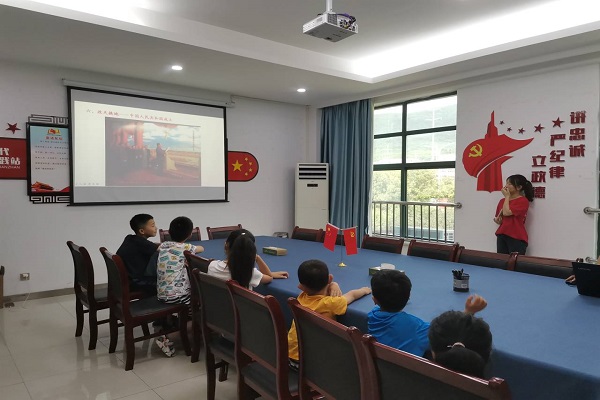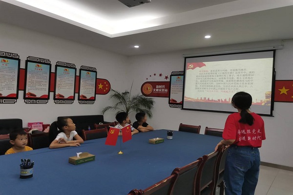 为深入学习党史,让孩子们学习革命先烈优秀的革命精神,体会到现在的幸福生活来之不易。7月15日上午,阳光温暖小队于8:30提前到达西山社区开展党史宣讲活动。志愿者们准备好宣讲PPT以及活动奖品,安排他们按顺序入座。王轩轩从建党前中国历史背景,先进知识分子寻找中国出路,中国共产党诞生,共产党人浴血奋斗,中华人民共和国成立等十个方面讲述了中国共产党成立过程的艰苦奋斗。随后,她对于本次宣讲内容进行提问,孩子们踊跃举手,积极回答问题,志愿者们为回答正确的小朋友颁发小礼品,鼓励他们多与老师互动。最后,宣讲结束,王轩轩为同学们播放适合他们观看的建党视频,并适当讲解视频内容,给孩子们留下深刻印象。