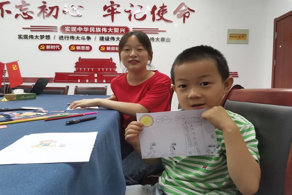 为促进父母与孩子之间的亲情交流,探索一条通过绘画加强家长与孩子之前的沟通新道路,7月16日上午8:30,阳光温暖小队前往西山社区开展了开展了亲情绘画活动。活动伊始,志愿者们提前准备好画纸,画笔以及活动小奖品。接着,陈文婧通过播放简单有趣的简笔画视频来吸引孩子们的注意力,让他们对视频里的简笔画产生兴趣,并教他们如何模仿视频里的绘画。随后,她以亲情为主题,鼓励孩子们用画来表达自己对父母的感情,并教他们如何上色使绘画更加美丽,他们积极学习,很快就完成了一幅幅美丽的图画。最后,志愿者们为绘画的小朋友颁发小礼品,鼓励他们积极培养自己的兴趣爱好,通过自己的方式来表达自己对于父母的感情。
