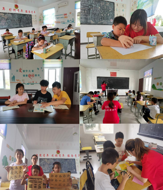 道之所存,师之所存也。志愿者们站在三尺讲台,用粉笔在黑板上一笔一划写下知识点,和学生一起遨游知识的海洋;志愿支教分为大班教学和小班单辅,所开设课目也是丰富多彩从国文、书法到数学、手工再到英语、科普,就是希望能够尽志愿者们所能帮助孩子们多丰富自己的世界。