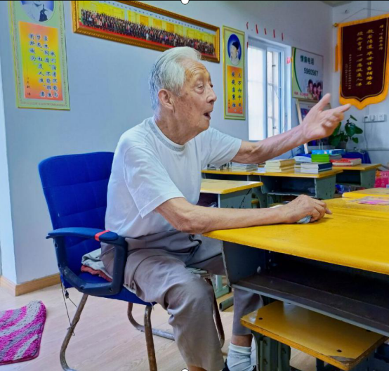 来这儿前,成员们早就听说过叶连平老师,93岁的高龄仍坚守讲台,“站好最后一班岗”,退休不退志,投身贫瘠乡村教育事业,自掏腰包创办“留守儿童之家”,20年来免费给千余名留守儿童做英语辅导,花光30余万元积蓄。年逾九旬的他被誉为余热生辉的“乡村烛光”。他一站上讲台、拿起粉笔就来“劲”了,说话铿锵有力、掷地有声,他是“最美奋斗者”,是“全国道德模范”。叶连平老师为乡村教育奉献了40多年,退休后仍坚持为学生义务辅导,“留守儿童之家”的开办解决了村民的燃眉之急,广受欢迎,很快啊就由一个班变成两个班,村里不同年级的学生都来到这里学习,叶连平老师经常忙得饭都顾不上吃。为了能够帮助到贫困学生,叶连平老师还在2012年拿出5万元积蓄,在社会的多方支持下,成立了叶连平奖学金。截至目前,奖学金已经发放了7次,惠及132个孩子。可他自己的衣服却穿了一年又一年,十年又十年。他是如此的平凡而又伟大,他的事迹不仅感动了留守儿童及家人,更感动了中国,他被评为感动中国2019年度十大人物之一,这不仅是对他的褒奖,更多的是对他这类人身上所散发的精神的高度肯定。叶连平老师曾经对来访者说“我希望最后一口气是在讲台上呼出的”,我们团队有幸在这个暑期与叶连平老师一起,为留守儿童服务,学习叶连平老师这样的榜样,用实际行动践行“初心”和“使命”。