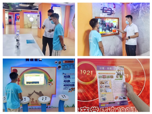 在合肥市瑶海区禁毒教育基地,志愿者在禁毒教育基地负责人的带领下,参观了瑶海区禁毒教育基地,并亲身体验了许多禁毒教育项目。负责人针对瑶海区禁毒教育基地的实际情况详细地介绍吸毒成瘾的缘由、吸毒的方式,并通过视频成像、VR等的电子设备让团队成员亲身感受到吸毒的危害。据负责人介绍,瑶海区禁毒教育基地主要通过机器模拟、电子屏展示和播放禁毒宣传电影等形式开展禁毒教育活动。在负责人的陪同下,团队队员亲身体验了毒品常识答题和模拟法庭庭审,加深了志愿者对于禁毒的相关知识的认知。禁毒基地的体验活动,进一步帮助志愿者强化了防范毒品抵制毒品的意识,成为推动宣传禁毒教育的持久动力,引导并鼓励更多的青年志愿者投身禁毒宣传。