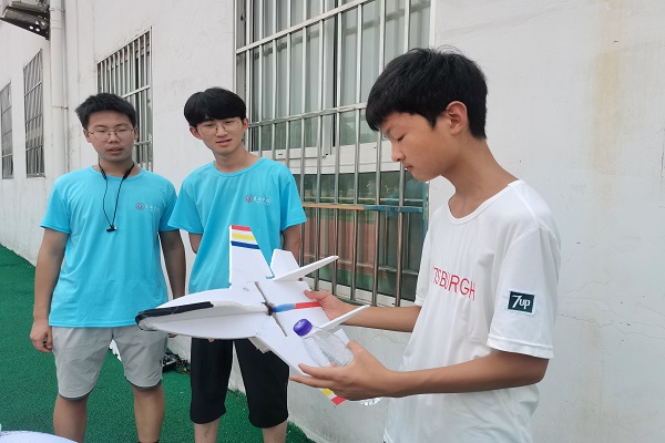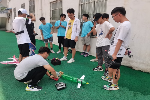 一早,志愿者将蚂蚁宝贝接到金年汇官方入口。志愿者带着蚂蚁宝贝来到第二田径场,观看无人机飞行演练和“水火箭”发射实验。来自航模协会的技术人员首先向蚂蚁宝贝们讲解无人机和“水火箭”的工作原理,并进行无人机飞行实际操作演练,蚂蚁宝贝看的十分入迷,向技术人员投出崇拜的目光。在航模协会的技术人员指导下,蚂蚁宝贝韩星宇接过无人机遥控器尝试无人机的简单起步飞行。之后,航模协会的技术人员又向蚂蚁宝贝表演“水火箭”发射实验,遗憾的是“水火箭”的第一次发射没有由于底部漏气没有发射起来,但经过修改后,“水火箭”成功发射,降落伞也成功开伞。航模协会的技术人员告诉蚂蚁宝贝,失败是成功之母,我们不能害怕失败,要正确看待失败,不断改进。