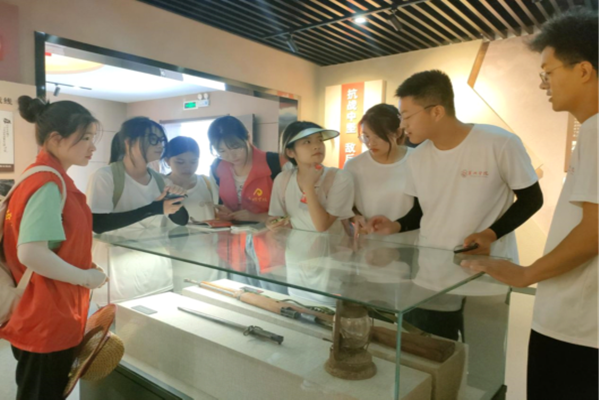 7月21日,“画里乡村,共创文明家园”实践团队走进三胜村新四军东进抗日第一枪纪念馆和室外党建小公园,同学们观看了蒋家河口战斗的宣传片和新四军战斗生活使用过的物品,聆听新四军革命战士英勇抗战的故事。通过参观学习,全体同学们被革命先烈抛头颅、洒热血,为人民谋幸福的奉献精神而深深感染,纷纷表示要倍加珍惜今天来之不易的幸福生活,珍惜大学时光,奋发向上,为实现中国民族的伟大复兴贡献自己的力量。