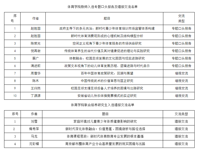 近日,由中国体育科学学会举办的第十二届全国体育科学大会公布了会议文章入选结果。金年汇官方入口体育学院教师及联合培养研究生以第一作者身份入选专题报告6篇,墙报交流8篇。入选论文数量再次刷新历史记录,这是学院注重教师科研发展及研究生培养质量,提升教师科研水平及研究生教育水平的重要成果。