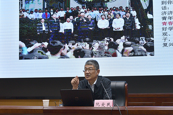 阮爱民牢牢把握习近平总书记关于教育的相关论述精神,从自身担任辅导员工作的经历和长期从事高校管理工作的经验出发,从理论和实践两个维度详细阐释了如何“牢牢把握新时代高校辅导员的使命任务”和“争做新时代有志气有骨气有底气的辅导员”。