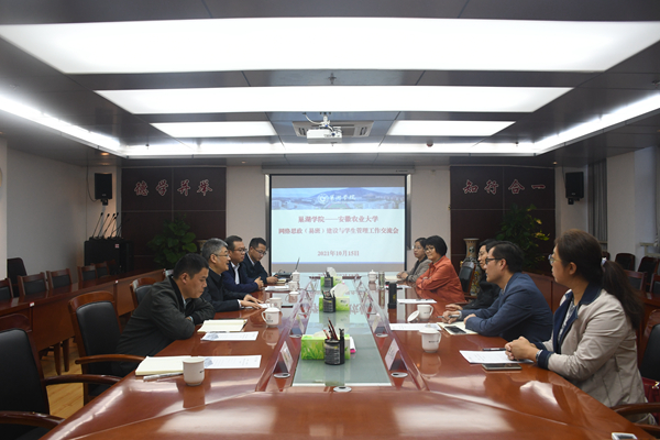 10月15日下午,安徽农业大学党委副书记裴树东一行来我校就网络思政(易班)建设、辅导员队伍建设及学生日常教育管理工作进行调研交流,交流会在校第一会议室召开,学工部负责人及相关人员参会。校党委副书记阮爱民主持会议。
