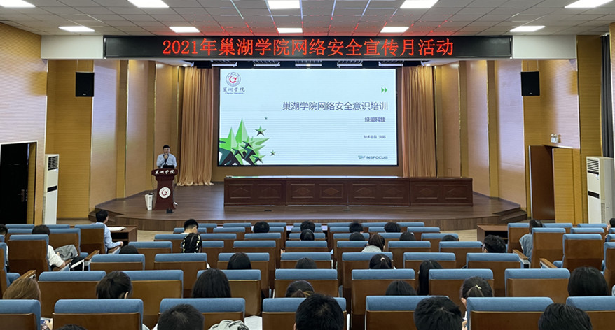 学校为此次活动还特别邀请了安徽绿盟科技集团技术总监沈郑为在校大学生作网络安全意识培训专题报告,外国语学院、数统学院、电子学院数百名学生参加了此次活动。沈郑通过大量案例、视频为学生展现出在大数据下的个人信息数据、个人安全隐私在免费WIFI使用陷阱、钓鱼网站中被套取的全过程,他分别从认识信息安全、网络安全法和数据安全法解读、网络安全意识三个方面,向在座大学生大力宣传国家网络安全法律法规,普及网络安全知识和个人防护技能,针对性开展网络安全宣传教育,提升师生的防范意识。
