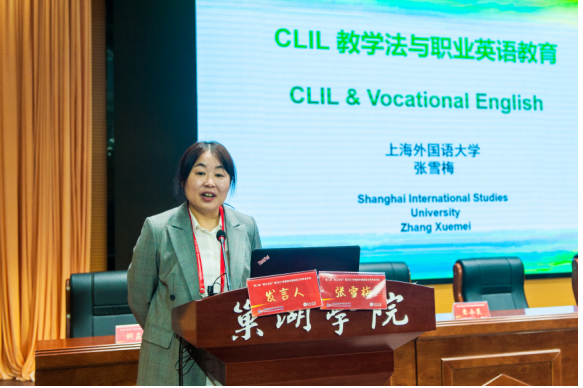 上海外国语大学张雪梅教授在主旨报告中阐释了CLIL(语言与内容结合的教学法)的研究缘起、理论基础、主要特征和组织与实施方式,以及它们在教学中的优势。她结合国内英语教学改革的形式,探讨了CLIL教学法在职业英语教学中的具体应用。