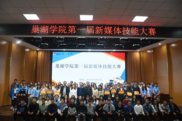 经过前期线上、线下相结合的笔试环节层层筛选,共有74位选手披荆斩棘、过关斩将,从最初1000多名报名参赛的同学中脱颖而出进入决赛环节。进入决赛的八组队伍以“邂逅巢院”为主题拍摄图片和视频,制作微信推文,决赛现场每组选出一名同学上台进行成果展示,将巢院的美食、美景精彩纷呈地展现给现场的评委老师和观众。