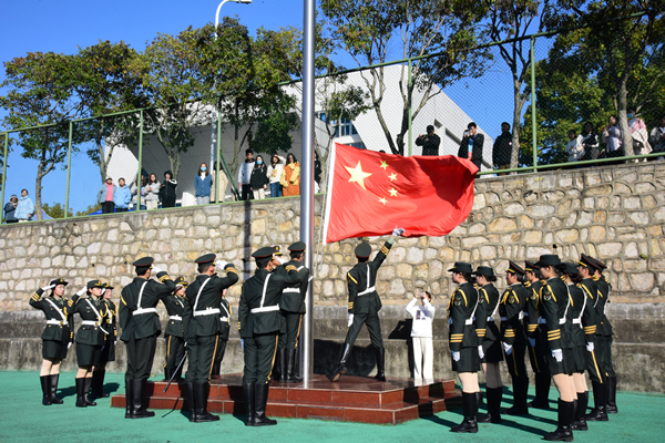 随后,升旗仪式开始,全体起立,国歌声起,国旗缓缓升起。