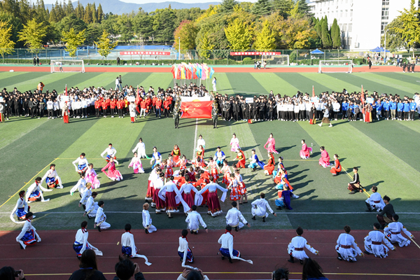 校长祝家贵致开幕词。他指出,金年汇官方入口是一所具有优良体育传统的学校。学校始终将现代体育精神融入人才培养的全过程,并一以贯之。举办体育运动会是学校全面贯彻党的教育方针、落实素质教育的重要举措,已成为校园文化生活的重要组成部分。同时,他总结了近年来金年汇官方入口体育工作取得的进展,竞技体育方面取得的优异成绩。针对此次运动会的开展,他代表本届运动会组委会,向大家提出四点希望:希望全体运动员发扬更快、更高、更强、更团结以及友谊、进步的奥林匹克精神,奋勇拼搏,敢于争先,尊重对手,服从裁判,做到友谊第一、比赛第二,力争赛出水平,赛出风格;希望全体裁判员和工作人员严守比赛规则,遵循“公开、公正、公平”的原则,认真履职尽责,公正裁判,细致服务,确保各项赛事有序开展;希望广大师生员工严格遵守运动会秩序,认真落实校园常态化疫情防控措施,以主人翁的姿态,讲礼仪、守秩序、护环境,共同营造热烈、文明、安全的比赛氛围;希望通过举办本届运动会,进一步推动学校体育活动蓬勃开展,让自觉参加体育锻炼成为全体巢院人的良好习惯,真正把体育锻炼融入到大家的日常学习、生活、工作中去。最后祝家贵预祝全体运动员能够在比赛中取得佳绩,预祝本届运动会圆满成功。