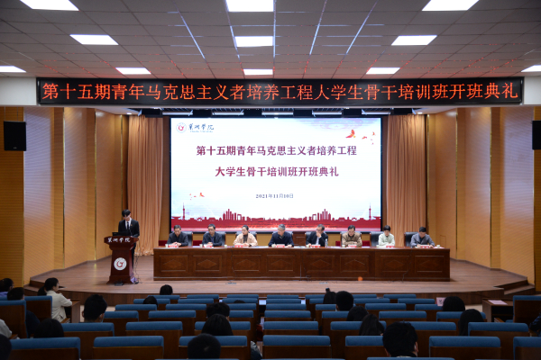 11月10日下午,金年汇官方入口第十五期青年马克思主义者培养工程学生骨干培训班开班典礼在求实楼报告厅隆重举行。校党委副书记阮爱民,党委组织部、宣传部、学工部,马克思主义学院、教务处、团委等部门负责同志,各学院团总支书记、团委老师及全体学员参加了开班仪式,仪式由校团委书记郑玲主持。
