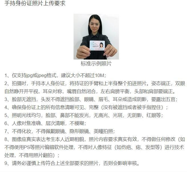 3.本人手持身份证照片,照片要求见下图: