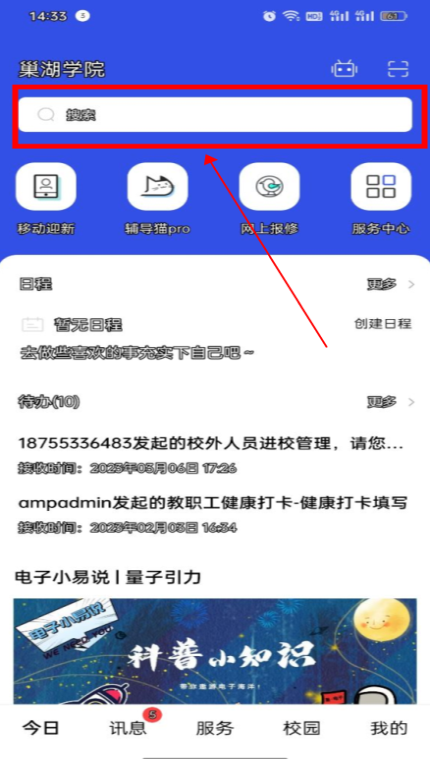 2.移动端报修。登录“易班·今日校园”APP,搜索“网上报修”应用服务,点击右下角“+”进入报修界面,如图3所示。