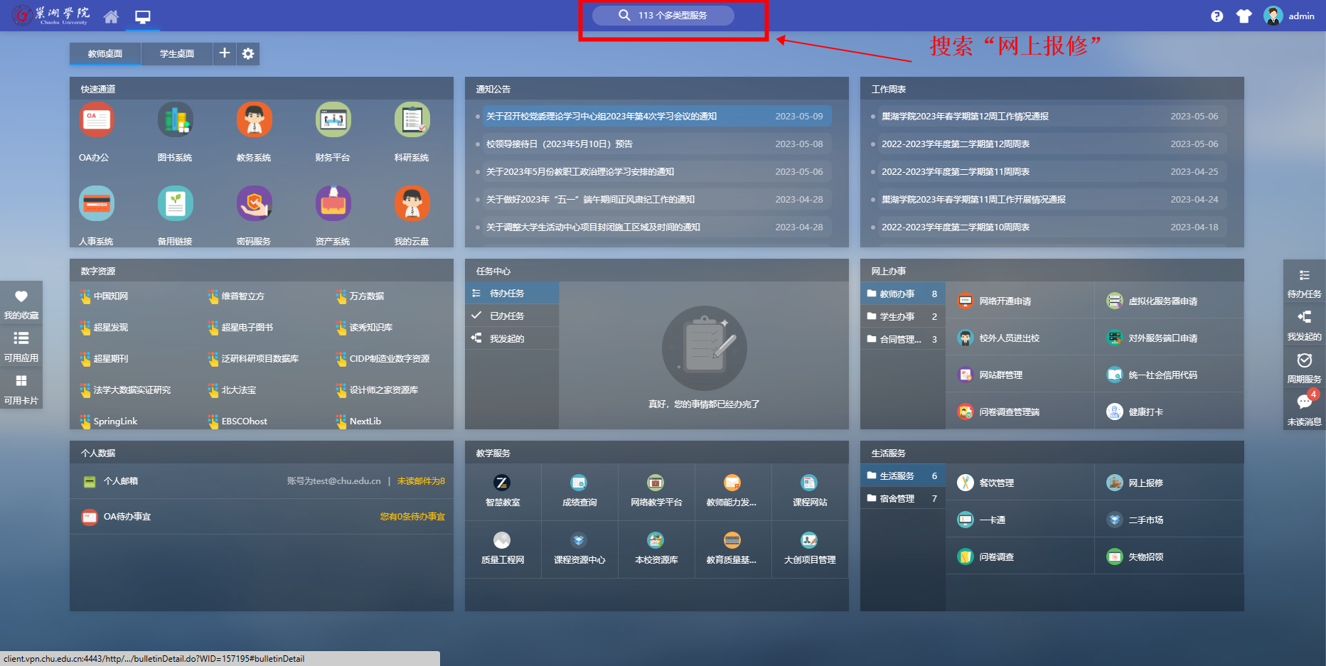 3.使用“网上报修”应用过程中出现任何问题,请及时联系后勤处(82361442)或信管处(82361800)工作人员。