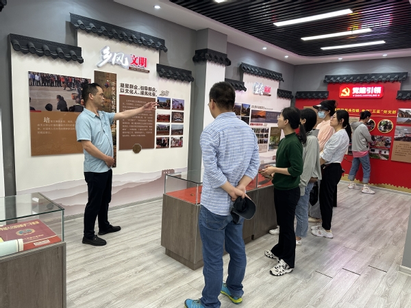 在汪桥村历史文化遗址,钱书记向党员教师讲述当地的发展历程和红色故事,使大家感受到革命先烈们的奋斗精神和牺牲精神,尤其讲述了抗战时期党员同志们严守纪律要求,才能在皖东敌后坚持抗战。在汪桥村党群活动中心,钱书记从产业发展、乡村旅游、生态保护、文化传承和社会治理五个方面向党员教师展示汪桥村乡村振兴的发展成果。最后,钱书记带领党员教师深入汪桥村的田间地头,实地了解当地农业生产和农村生活的情况,并与村民亲切交流,共同探讨乡村振兴的有效途径。