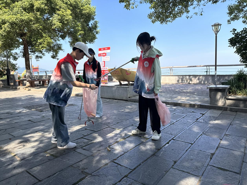 国家4A级旅游景区姥山岛以其秀美的湖岛风光和千年文峰塔等人文胜迹闻名遐迩。为守护这片生态与人文资源,团队成员进行文明旅游宣讲,倡导"垃圾不落地、古迹不涂画、花木不攀折"的文明准则,并邀请游客在文明旅游承诺横幅上签字。同时开展净滩行动,对游客中心、环湖步道等重点区域进行垃圾清理,有效维护了景区环境卫生,保护了自然生态,提升了游客环保意识。