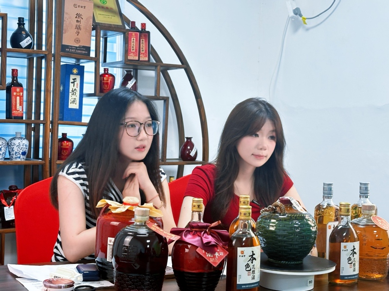 活动前期,团队与酒厂深度联动,为直播筑牢根基。在酒厂负责人的细致讲解下,队员们系统掌握了古南丰黄酒的核心优势:以优质糯米、小麦为原料,依托传承百年的传统手工酿造技艺,造就了其醇厚温润的独特口感,在本地积累了深厚的群众基础。同时,大家也了解到,受限于线下宣传范围和传统销售模式,这款优质黄酒的市场影响力始终未能突破地域限制,品牌知名度亟待提升,这让团队更加明确了直播的双重目标——既促销量,更树品牌。