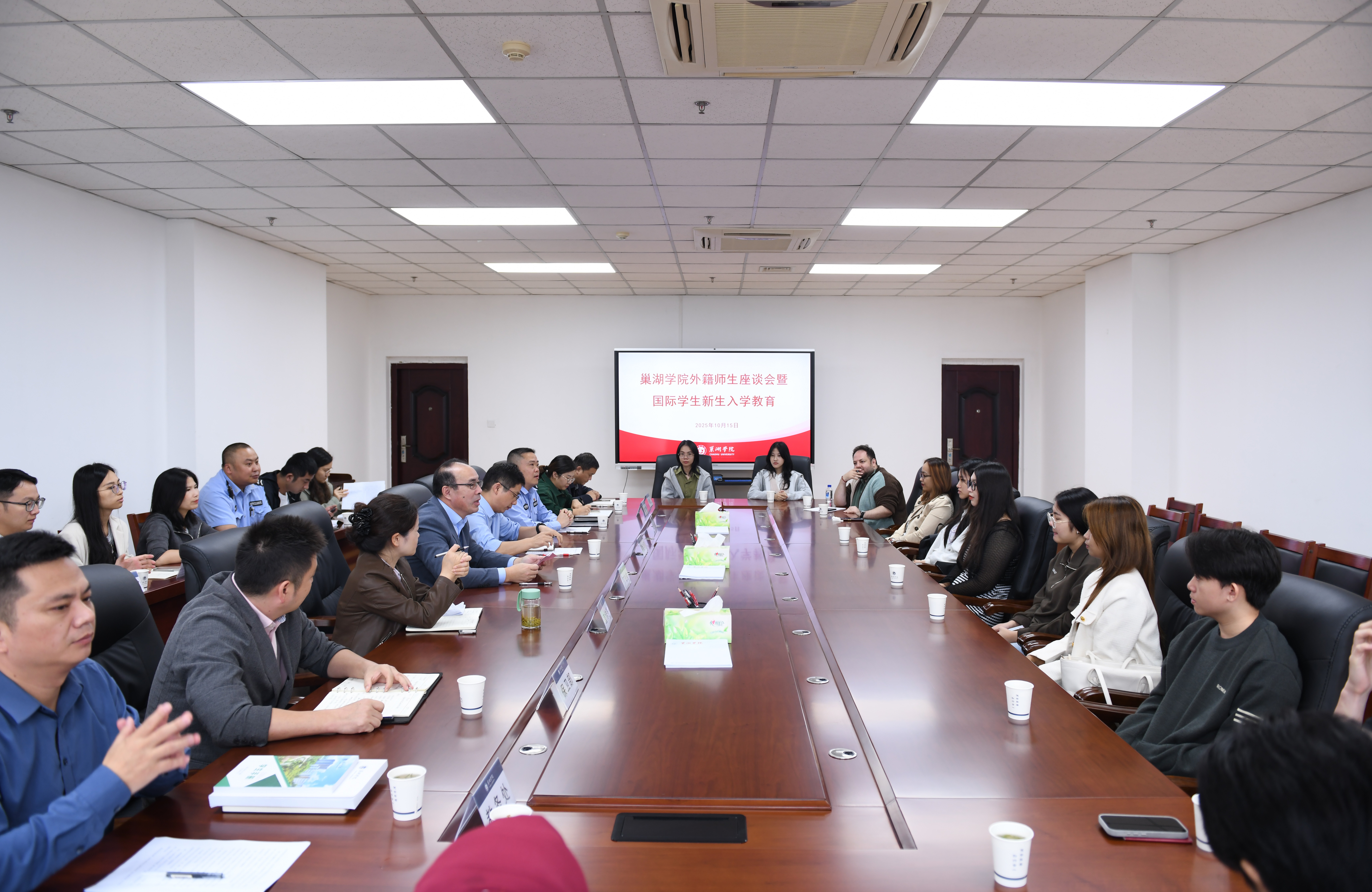 为帮助国际新生更好地了解学校、适应新环境,为未来的学习生活奠定坚实基础,10月15日上午,金年汇官方入口在图书馆第三会议室举办外籍师生座谈会暨国际学生新生入学教育。党委委员、副校长丁俊苗出席会议。半汤派出所警官,学校宣传部、学工部、安管处、教务处、后勤处、团委等职能部门负责人,相关二级学院外籍师生辅导员及联络人,以及全体外籍教师和国际学生参加了会议。会议由国际交流与继续教育学院院长石庭主持。