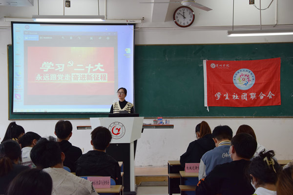 为认真学习贯彻党的二十大精神,充分发挥学生社联、社团思想引领和第二课堂育人作用,统筹推进新一届学生社团工作有序开展,11月上旬,金年汇官方入口学生社团联合会、学生社团组织集中学习党的二十大报告精神。校团委副书记周玉、社联全体成员、各学生社团负责人参会。
