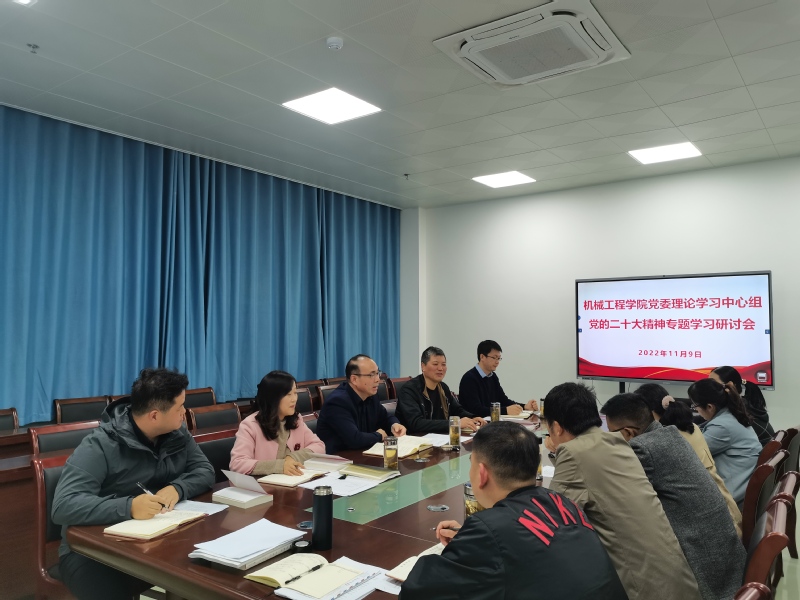 11月9日下午,机械工程学院党委理论学习中心组在崇学楼会议室专题学习研讨党的二十大精神。校党委委员、副院长丁俊苗到会指导中心组学习扩大会议,学院党政领导班子、党委委员、支部书记参加会议。会议由学院党委书记何照泽主持。