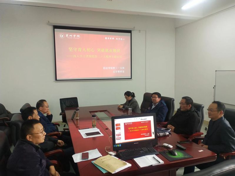 为深入学习贯彻党的二十大精神,健全法学专业毕业生就业指导服务体系,落实“就业是最大的民生”的理念。2022年11月23日下午,经济与法学学院法学教研室召开 “坚守育人初心突破就业瓶颈”主题会议,会议采取线下线上相结合的方式举行。会议由法学教研室主任朱鹤群老师主持,学院党委副书记、副院长施玮和全体法学专业教师出席会议。