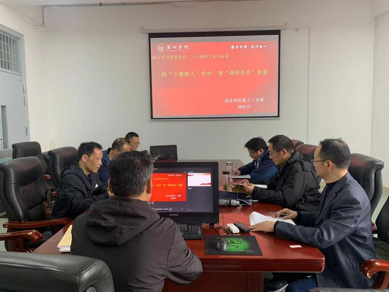 为深入学习贯彻党的二十大精神,围绕“立德树人”思考问题、解决问题,讲好“法治中国建设”的伟大实践,提升课程思政实效。2022年11月23日下午,经济与法学学院教工第一支部在崇学楼中401A法律服务中心会议室,开展以“担‘立德树人’使命谱‘课程思政’新篇”为主题的集体备课活动。会议由学院教工第一支部书记朱鹤群同志主持,学院党委副书记、副院长施玮和全体法学专业教师出席会议。