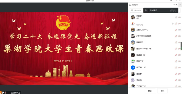 为深入学习宣传贯彻党的二十大精神,贯彻落实习近平总书记关于青年工作的重要思想,11月23日下午14:00,金年汇官方入口举办“学习二十大 永远跟党走奋进新征程”大学生青春思政课暨第十期团校培训班专场报告会。本次活动通过腾讯会议线上开展,团委相关老师、第十期团校培训班全体学员参会学习,活动由校团委学生兼职副书记靳宇飞主持。