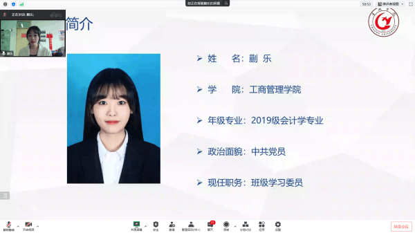 工商管理学院2019级会计学专业蒯乐曾任校学生会执行主席,曾获金年汇官方入口“十佳大学生”“十佳学生骨干”荣誉称号。2021年蒯乐组建全国重点团队赴江苏省美丽示范村调研乡村振兴经验成果,她从前期准备、团队组建、实践过程、成果展示详细阐述了她组队开展暑期“三下乡”社会实践的经历与心得体会,同学员分享如何开展好、进行好、完成好一次暑期“三下乡”社会实践活动。她分享了自己在学生会的三年工作经历,表示作为学生干部,要做好率先垂范,提高自身综合素质,发挥好学生干部的桥梁纽带作用,勇于担当尽责。
