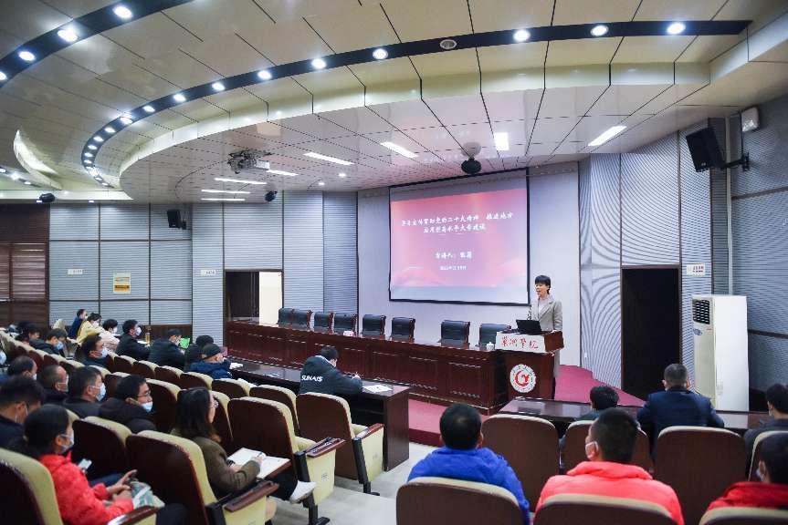 12月9日下午,校党委副书记、校长张莉在致知楼报告厅作党的二十大精神专题宣讲报告。发展规划处、审计处、体育学院、化学与材料工程学院等单位全体教职工和部分学生代表参加了报告会。