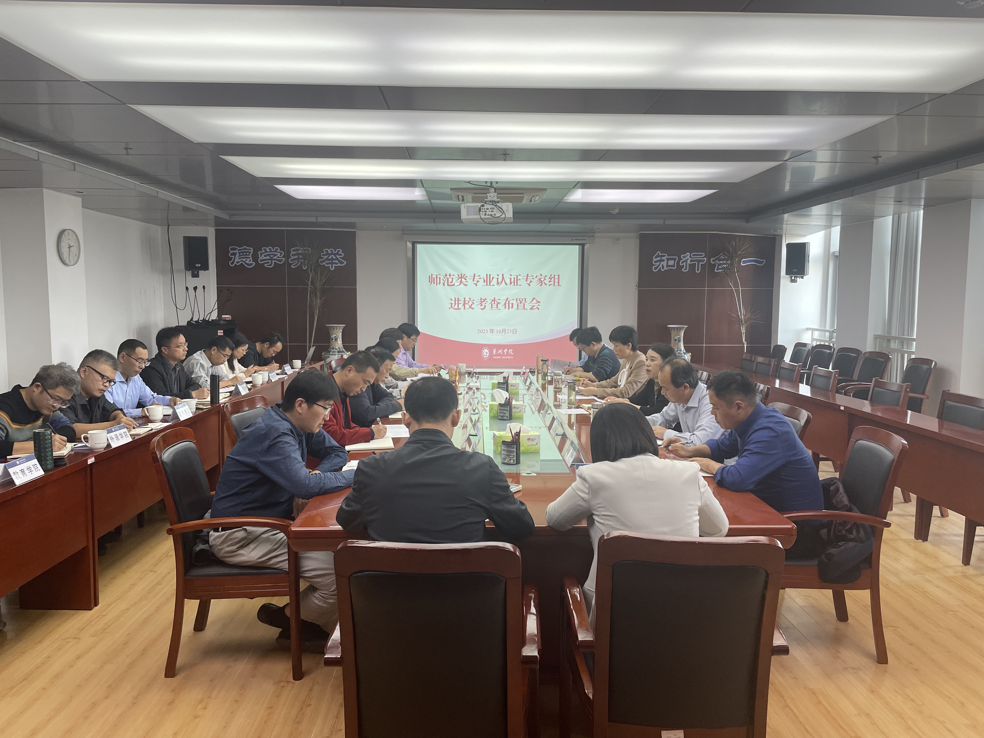 10月23日下午,学校在图书馆第一会议室召开2023年师范类专业认证迎接专家组进校考查工作布置会,对迎接11月12日至11月15日认证专家组进校开展数学与应用数学、美术学两个师范专业认证现场考查的相关准备工作进行布置。党委副书记、校长张莉,党委委员、副校长朱定秀出席会议,学校相关职能部门负责人,数学与大数据学院、美术与设计学院党政主要负责人,相关公共课学院院长(含主持工作的副院长)参加会议,会议由朱定秀主持。