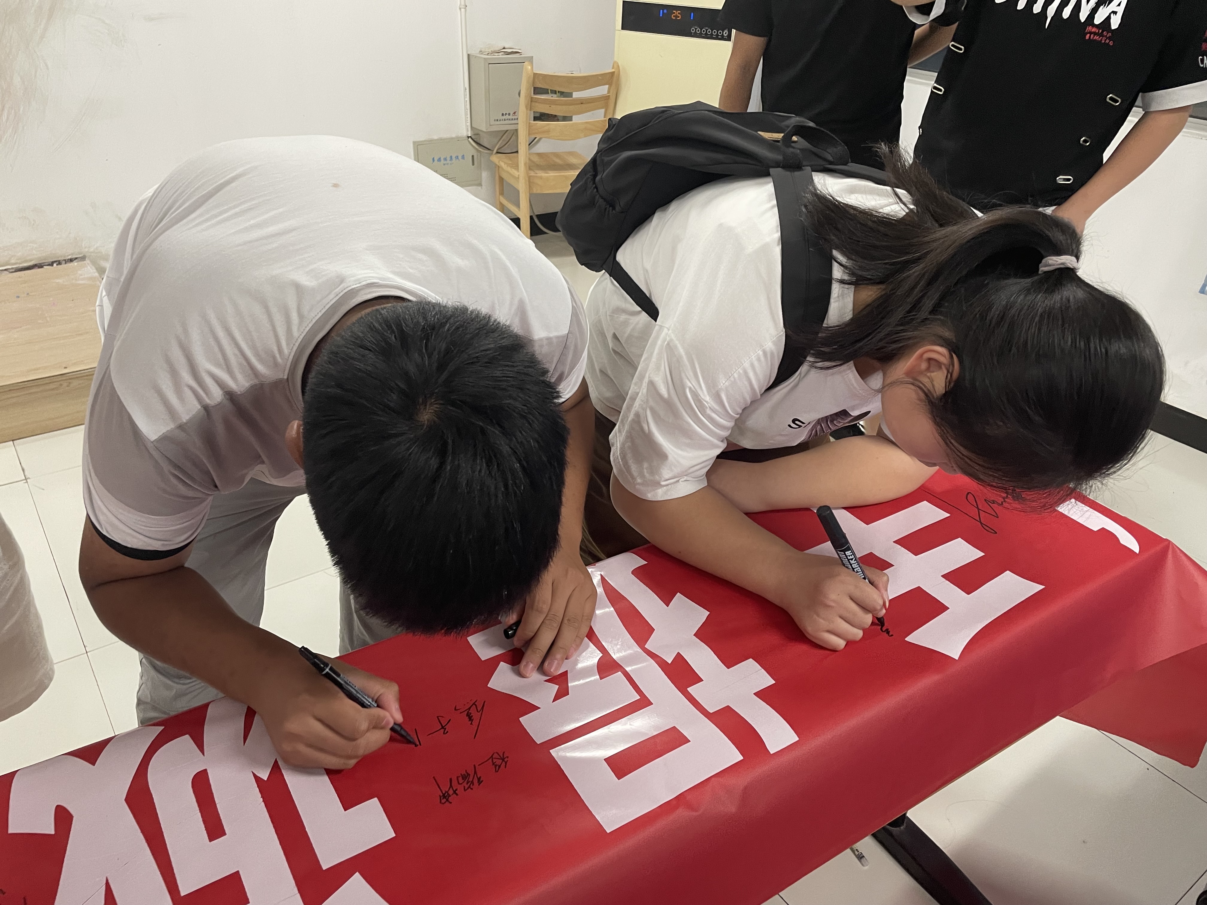 最后,各班长带领同学们共同进行诚信宣誓、签名。认真复习每一门功课,精心准备每一场考试,考出自己真实水平,做到期末考试“零作弊,零违纪”。