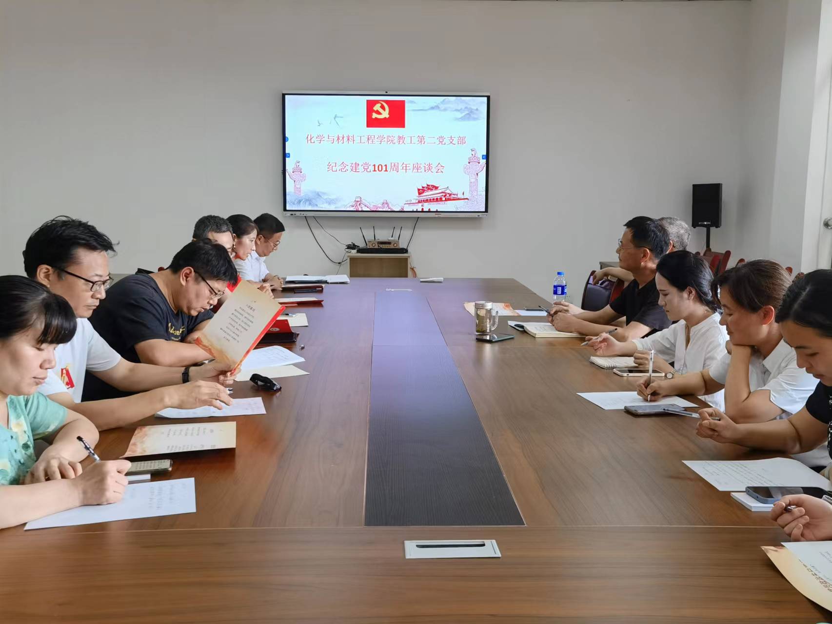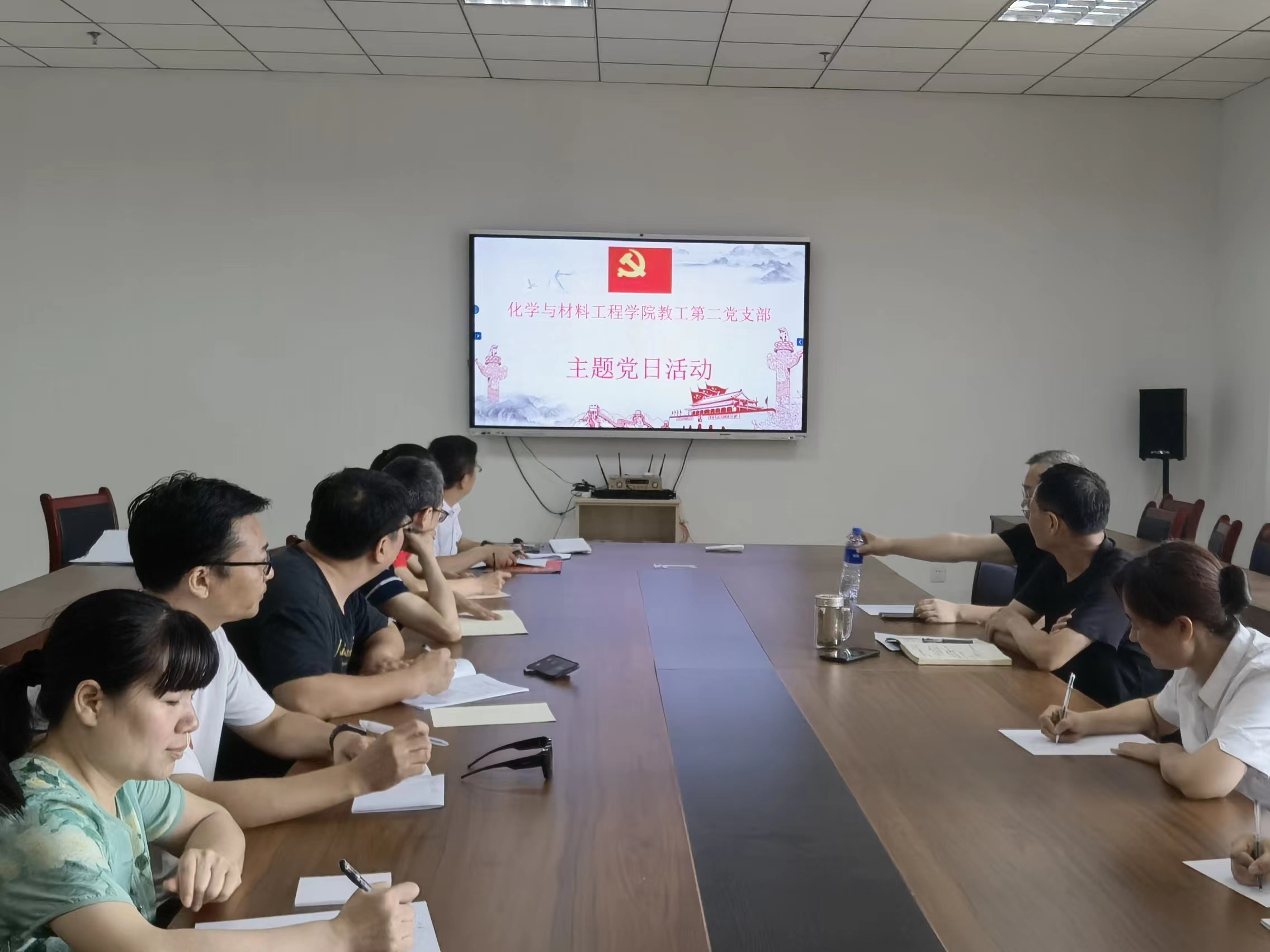 6月29日下午,化材学院教工第二党支部集中学习会议暨“迎七一”主题党日活动在润德楼303会议室召开,共同庆祝党的101岁华诞,会议由教工第二党支部书记陈小举主持。