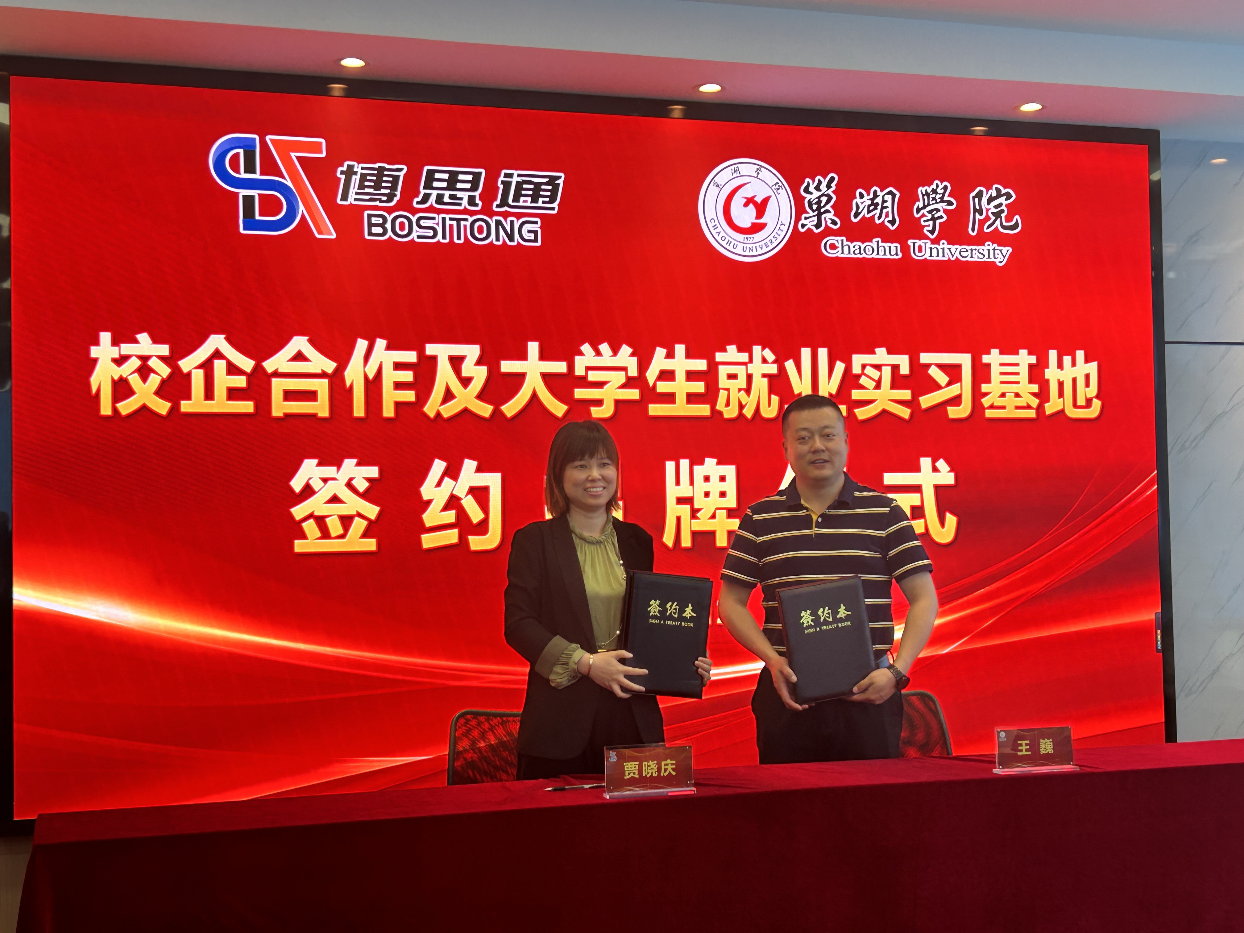 王巍与南京博思通新材料有限公司常务副总贾晓庆,分别代表校企双方签订《金年汇官方入口实习就业基地合作协议书》。