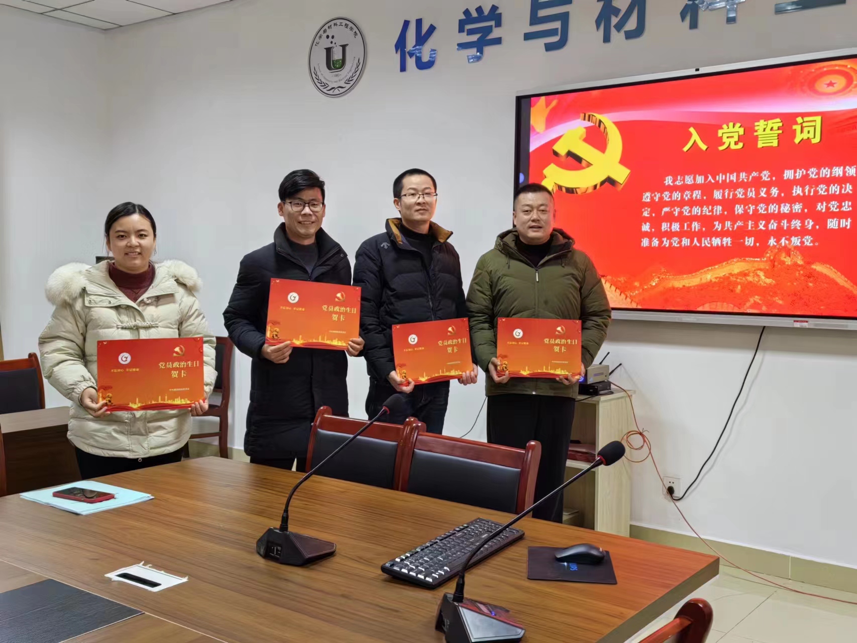 为深入学习贯彻习近平新时代中国特色社会主义思想,强化党员身份意识和责任意识,提升党员同志的组织归属感和政治荣誉感, 12月27日,化材学院教工第三党支部开展了“政治生日忆初心 砥砺奋进担使命”主题党日活动,活动由支部书记李川主持。