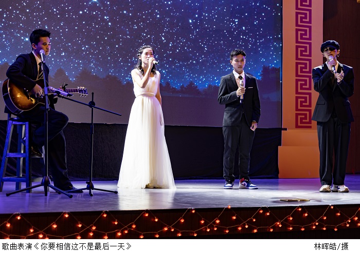 晚会包含大合唱、舞蹈、歌唱、小品等多种形式,异彩纷呈,为观众带来了感官上的享受。大合唱《彩虹》拉开了晚会帷幕,舞蹈《再战旗鼓》,鼓声乍起,自在随性的舞步洋溢着潇洒不羁的青春朝气;舞蹈《大鱼》,舞动的裙摆,唯美的舞姿,将大海深处的故事娓娓道来。19年校园十大歌手冠军刘明宜、20年季军匡小雨演唱的歌曲《生活倒影》,悦耳动听的歌声扣人心弦;小品《愚人劫》,剧情幽默诙谐,精彩的演绎燃爆了全场氛围。歌曲《你要相信这不是最后一天》,歌声情真意切,余音绕梁,仿佛太阳霓虹和云彩,温暖了每个人的内心。舞台剧《回家》,将团聚的欣喜、离别的不舍演绎得淋漓尽致,引起了在场的各位游子的共鸣。街舞表演《Fight》,年轻的节拍诠释澎湃的活力。手语表演《凤凰花开的路口》,带我们走进手语的世界,感受无声的力量。