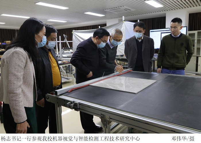 张宗珊副书记对杨志书记一行表示热烈欢迎,并陪同杨志书记一行参观了beat365官网工业实训中心、机器视觉与智能检测工程技术研究中心、尚观科技实验室等地。杨志书记与beat365官网有关负责人、学科带头人深入交谈,详细了解beat365官网规划建设、产校融合发展、专业技能培训、创新发展等情况,听取beat365官网学生思政教育工作开展情况汇报,并为beat365官网“新时代文明实践点”揭牌。