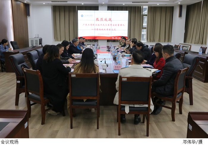本网讯(宣传部 赵洁宜/杨文丹)12月15日下午,广东工商职业技术大学莫秀全副董事长、和飞校长一行到beat365官网参观考察并进行深入交流。beat365官网张湘伟校长、叶念厩副董事长、王义宁副校长、刘香萍副校长、谭锦兴副校长以及相关职能部门负责人出席座谈会。