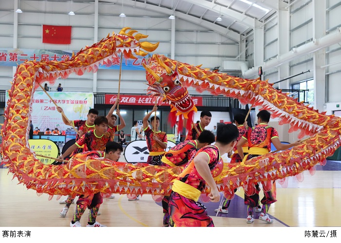 鼓乐激昂,铿锵有力。一条锦龙在赛场翻腾,俏皮的狮子踢跳翻蹬、立卧滚抖,舞龙舞狮队带来了精彩表演,大赛拉开帷幕。
