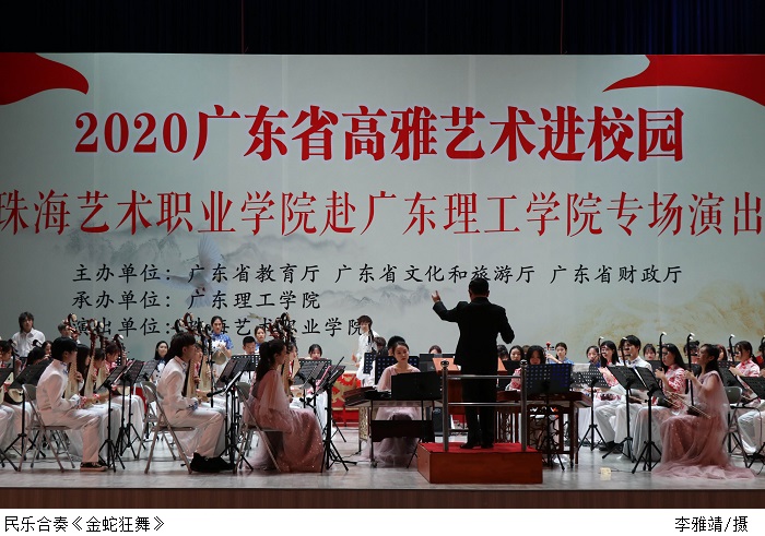 珠海艺术职业学院党委书记方华在致辞中强调高雅艺术进校园活动有助于大学生了解中华文化变迁、理清中华文化脉络、培养德智体美劳全面发展的社会主义建设者和接班人。