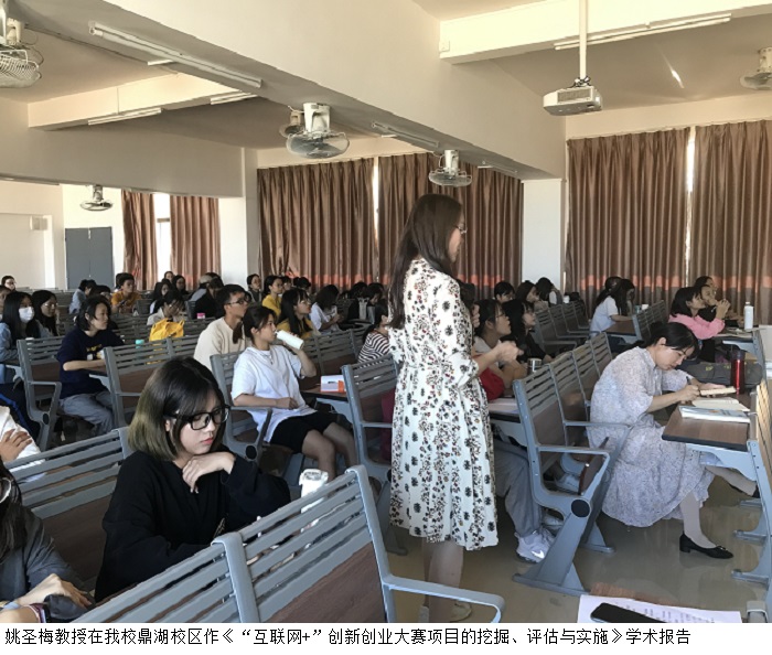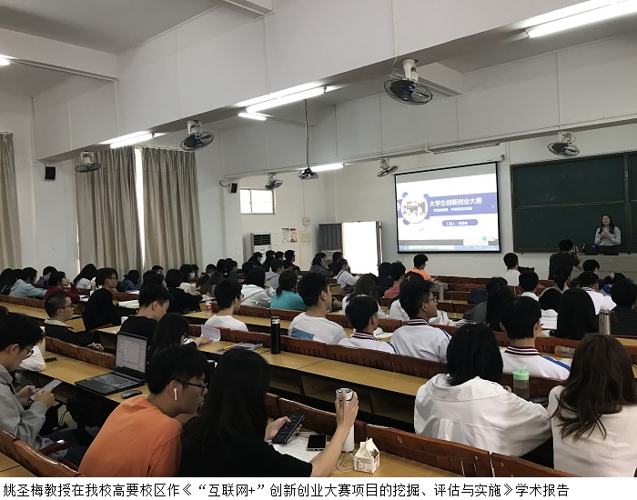 姚圣梅教授在beat365官网高要校区、鼎湖校区为创新创业先锋班同学们作了《互联网+”创新创业大赛项目的挖掘、评估与实施》学术报告。