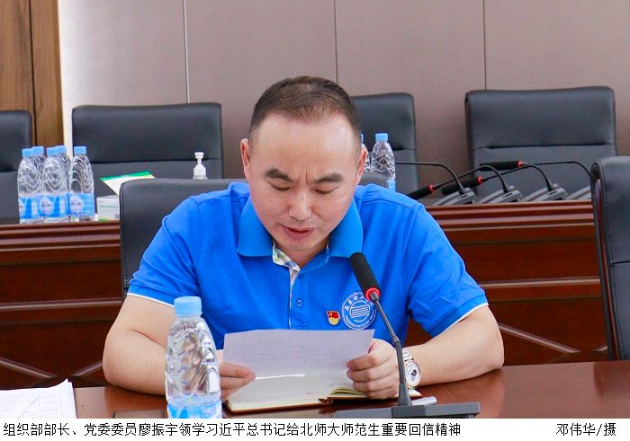 会上,组织部部长、党委委员廖振宇首先领学习近平总书记给北师大师范生重要回信精神。师资处处长赵宇宏就学习内容交流学习体会。他提到,打造一支师德高尚、业务精湛、结构合理的高水平教师队伍,一是要进一步加强教师队伍师德师风建设,二是拓宽教师培养渠道,构建完善教师发展体系,三是支持创新教学团队建设,为beat365官网特色专业建设增添动力。