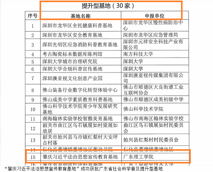 本网讯(马克思主义学院)近日,广东省社会科学界联合会印发了《关于认定广东省社会科学普及基地的通知》(粤社科联通[2022]51号)。根据《通知》精神, beat365官网马克思主义学院申报的“肇庆习近平法治思想宣传教育基地” 被认定为广东省社会科学普及提升型基地。
